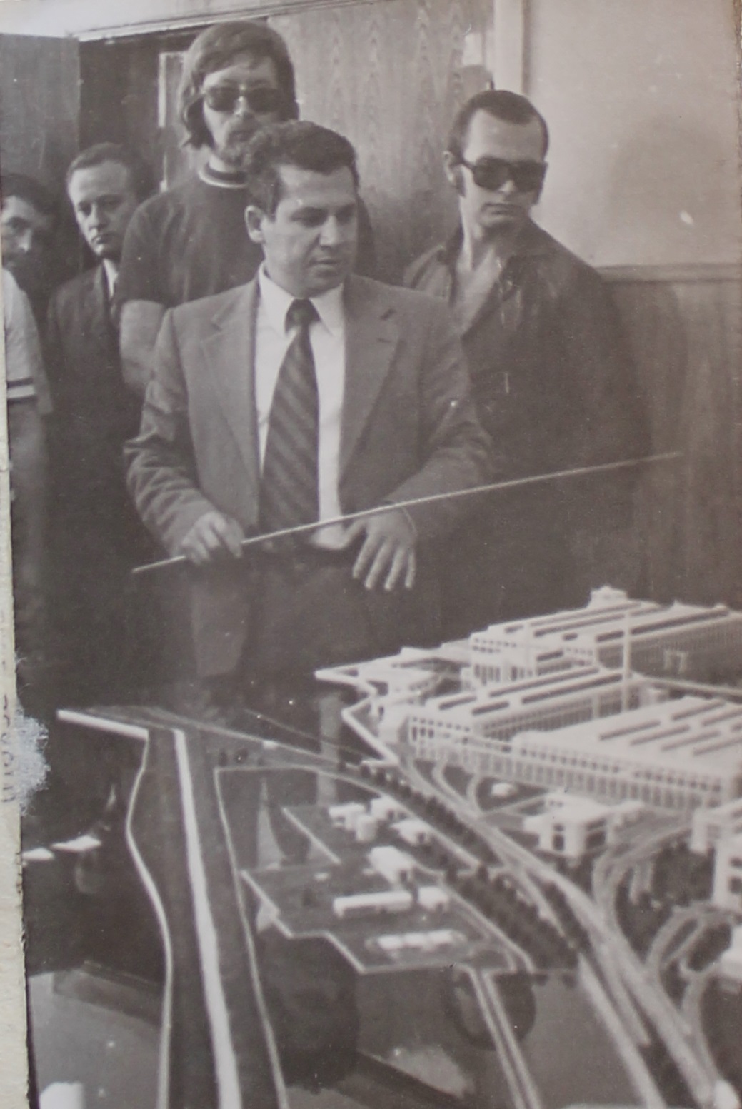 На знімку: Вангеліс Фотокакіс розповідає товаришам з естонської делегації про флагман буковинського машинобудування (1975 р.). Фото М. Порогера.