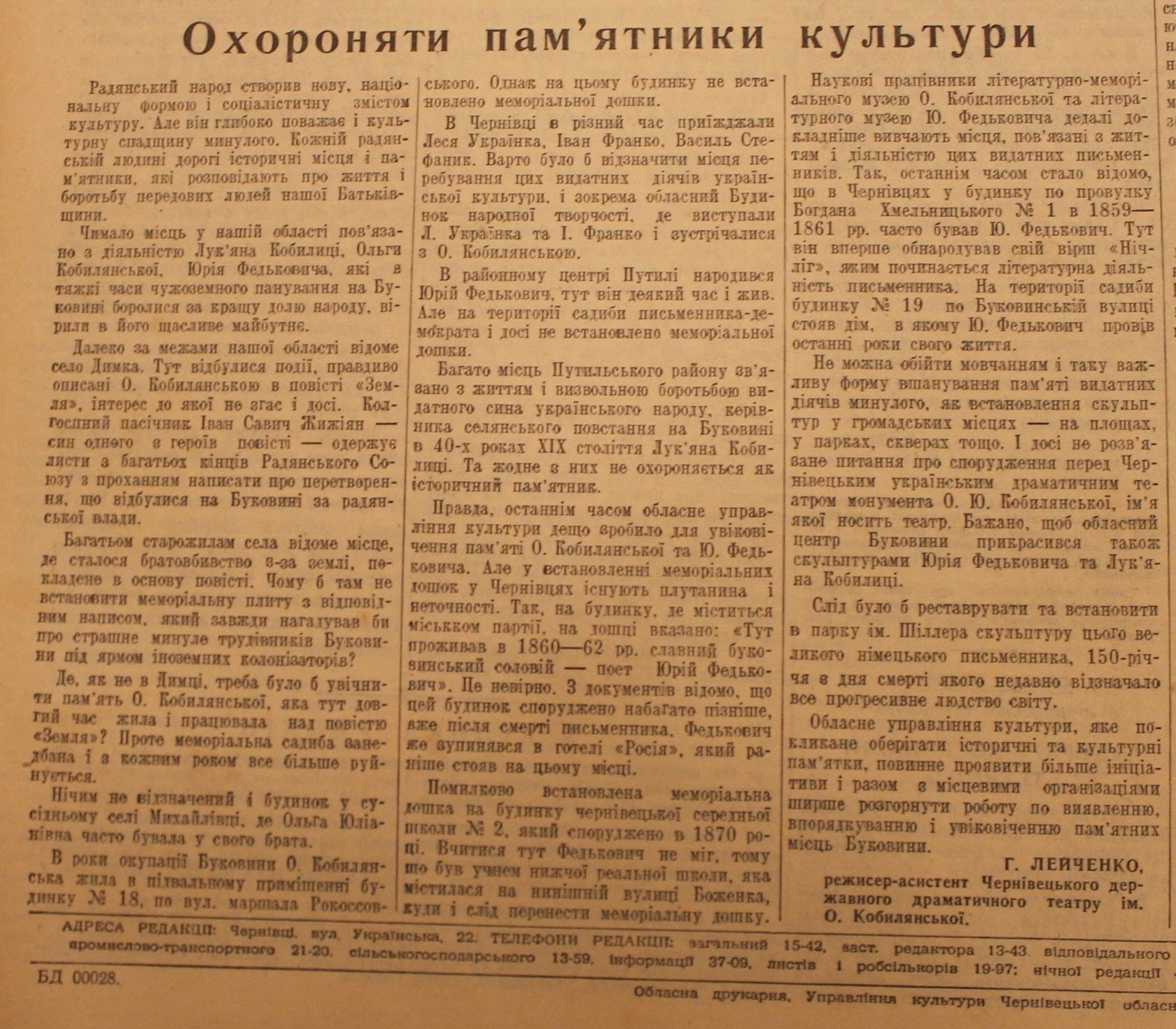 Г. Лейченко, режисер-асистент Чернівецького державного драматичного театру ім. О. Кобилянської